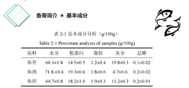 The main organic component of fish bone tissue is collagen, and the main inorganic components are hydroxyapatite crystals and amorphous calcium phosphate. Calcium salts can be deposited on collagen fibrils to form hard bone.